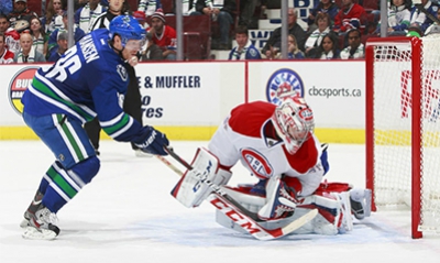 Po dni voľna sa v sobotu večer Habs opäť zapojili do zápasového kolotoča NHL. Tentokrát sa predstavili na ľade Vancouveru Canucks. Habs sa museli zaobísť bez kapitána Briana Giontu, ktorý nečakane odletel späť do Montrealu kvôli rodinným problémom. Šancu tak dostali mladíci Michael Bournival a Ryan White. Domácemu celku zase chýbal suspendovaný obranca Alexander Edler. V bránke sa predstavil Carey Price, pre ktorého je Vancouver takpovediac domáce prostredie a proti „kosatkám" sa mu aj celkom darí. Zostava Canadiens pri absencii Giontu vyzerala nasledovne: