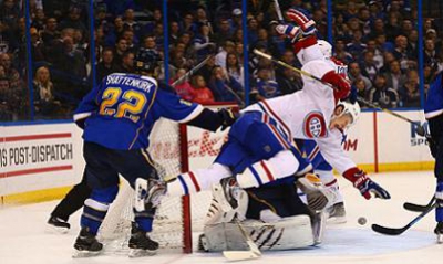 Třetí třetina a hned na jejím začátku přehlédnutý jasný faul vysokou holí na Jemelina. Vylučovalo se o pár vteřin později, další přesilová hra pro Habs a opět bez využití, i když pár zajímavých okamžiků před Halákem vzniklo... Čas plynul stále rychleji k šedesáté minutě, Habs přestáli další oslabení, ale čím dál více to vypadalo, že St. Louis bude stačit k vítězství montrealský blackout v první třetině... Na začátku dvanácté minuty si první formace Habs vypracovala solidní tlak, Halák ošemetné situace zvládl, naopak z brejku mohli opět udeřit domácí, ale Price také předvedl výborný zákrok... Za chvíli už ale bylo rozhodnuto, další přečíslení využil Schwartz a dal domácím uklidňující tříbrankový náskok, 4:1... Zakončení zápasu bylo stylové, trapná chyba a pátá branka v síti nešťastného Price, 5:1...